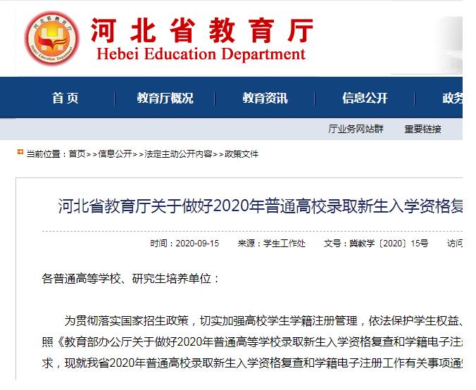 近日,河北省教育厅发布通知,将开展2020年普通高校录取新生入学资格复查和学籍电子注册工作。对高考加分资格、录取资格进行复核,对特殊类型录取新生开展入学专业复测,严防冒名顶替行为。