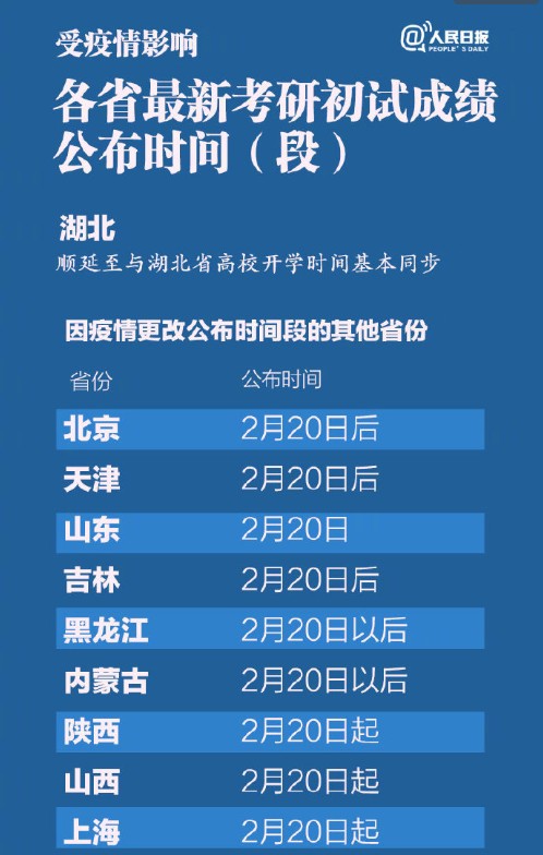 受疫情影响,湖北省教育考试院日前发布通知称,考研初试成绩公布将与湖北省高校开学日期同步。截至目前,全国#多省推迟考研成绩公布时间#,具体以各省研究生招生网为准。